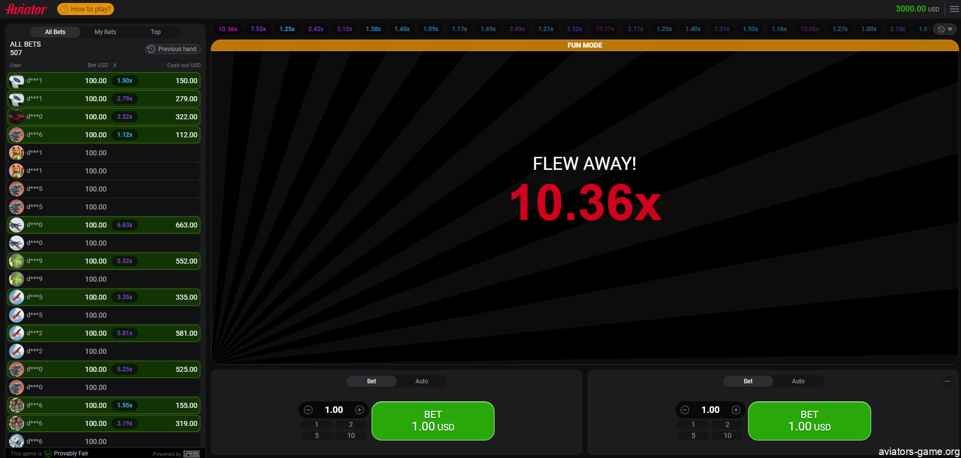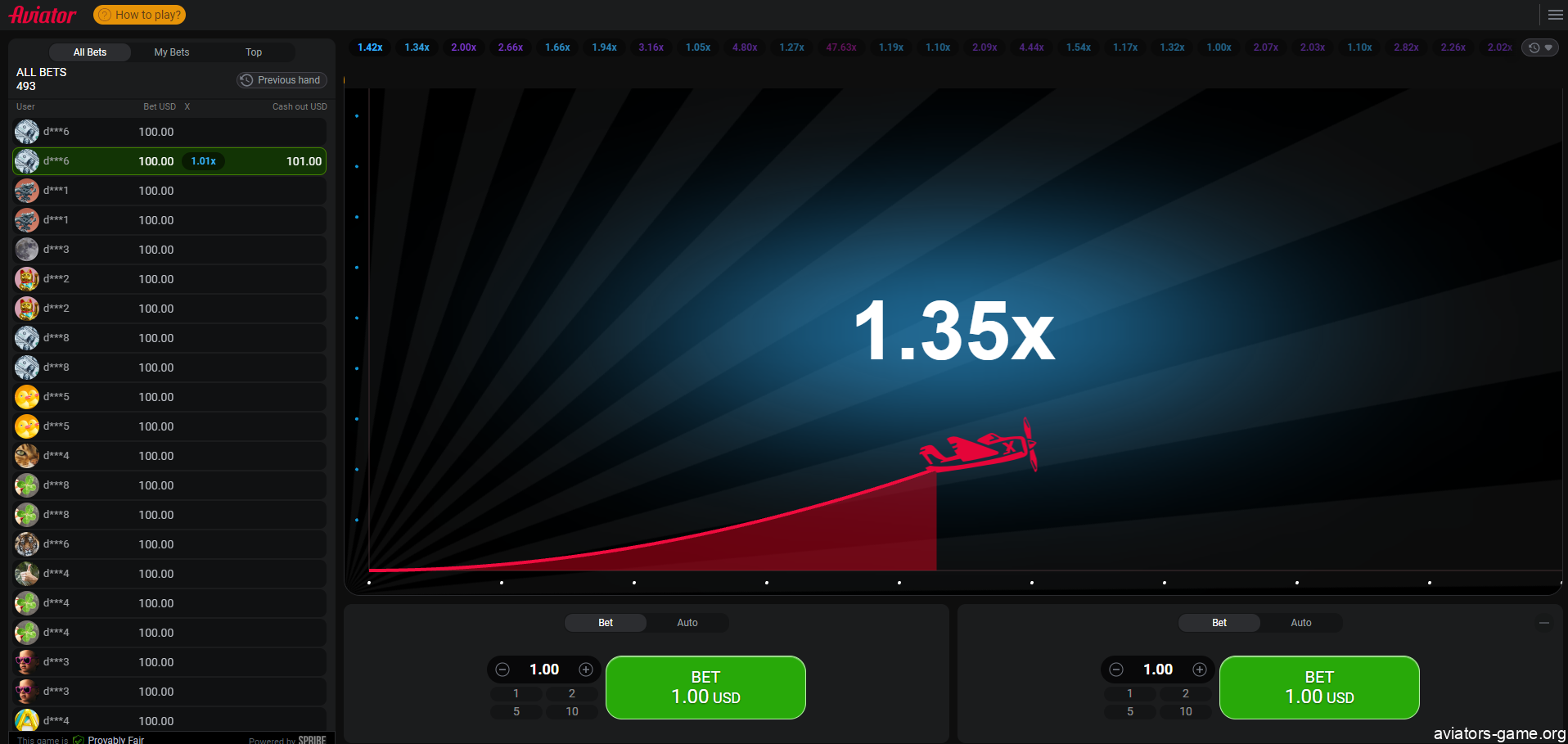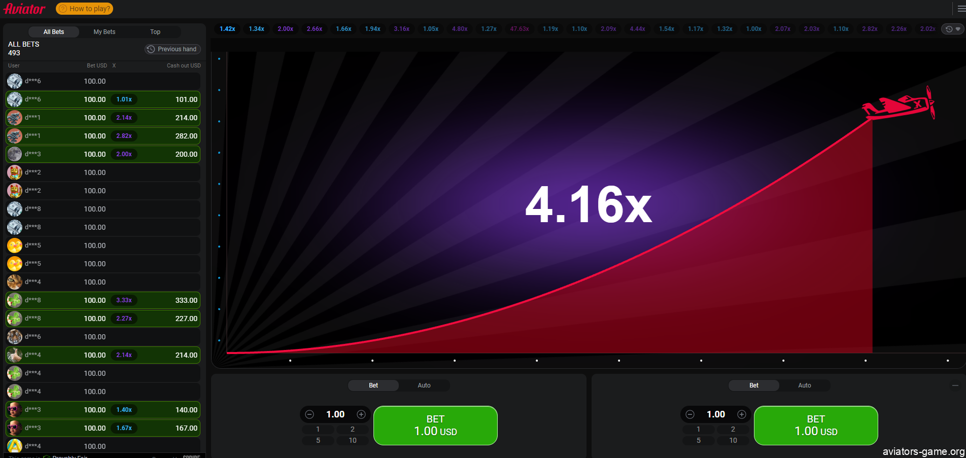 Your goal is to withdraw before the plane speeds off the screen. The winning sum in the Aviator online game will be determined by a coefficient equal to the height (or speed) of the aircraft at the moment you choose to cash out. In gameplay terms, they are represented in the multiplier on the screen.